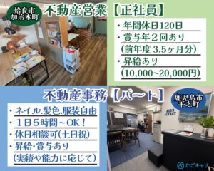 不動産営業(正社員)姶良市、不動産事務(パート)鹿児島市
